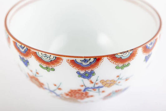 Sencha tea with a colorful plum and chrysanthemum design