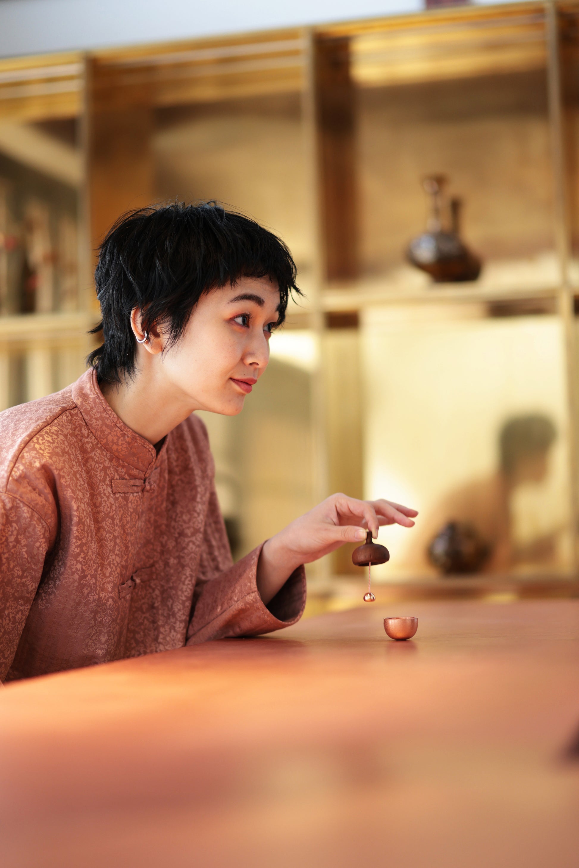 This small acorn-shaped bell is struck by a pendulum stored inside (patented). The movement of the pendulum creates a gentle and calming moment that will help you forget your busy everyday life. Its bright, clear tone matches its cute appearance.