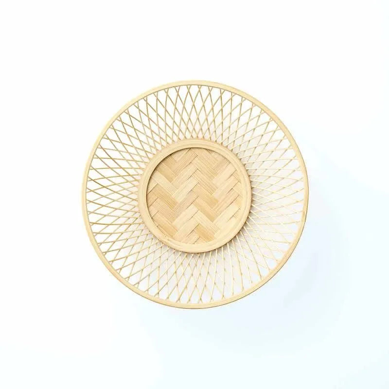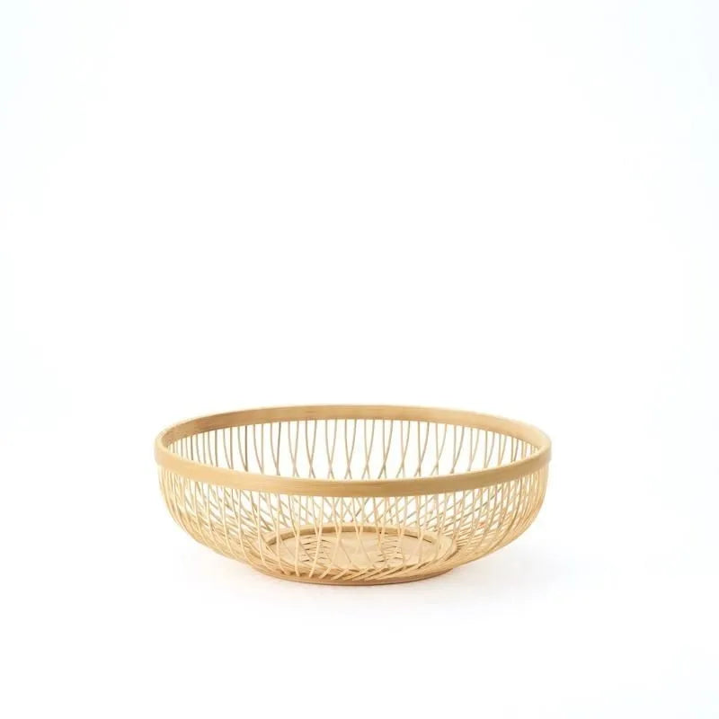 The bottom is made of flat bamboo and is woven vertically and horizontally with no gaps, creating a sturdy mesh weave.