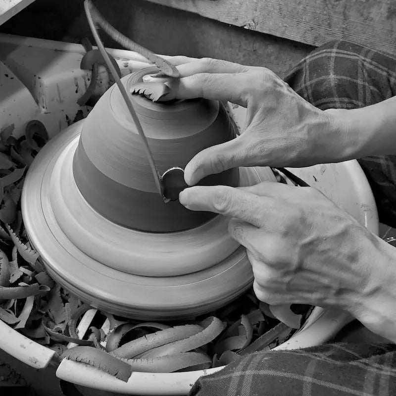 The extra effort required to scrape the surface, which is a unique feature of Shigaraki ware and requires the artisan's intuition, not only makes the piece lighter, but also reveals the unevenness caused by the large and small stones that are inherent to the pottery, creating a unique, rustic, and warm texture.