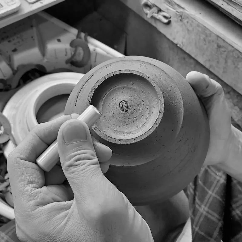 The extra effort required to scrape the surface, which is a unique feature of Shigaraki ware and requires the artisan's intuition, not only makes the piece lighter, but also reveals the unevenness caused by the large and small stones that are inherent to the pottery, creating a unique, rustic, and warm texture.