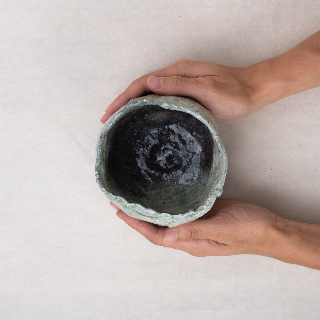 A tea bowl with a beautiful blue color Enjoy the rugged Iga patterns, the warm texture of the pottery and the unique designs by Fukushima Maya.