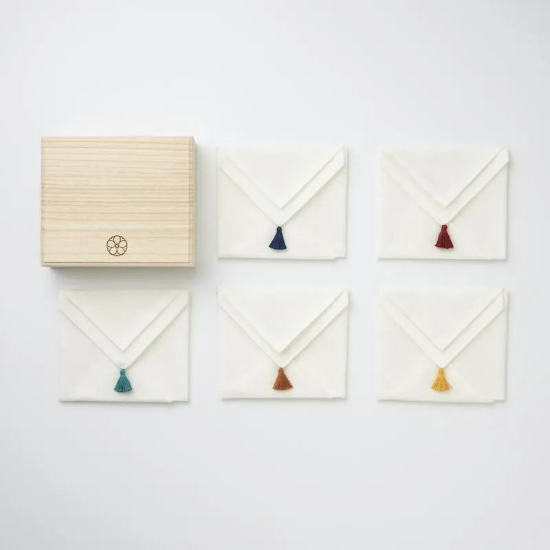 Ikue Handkerchief Premium 5-Piece Set in Paulownia Box, Wish Fulfillment