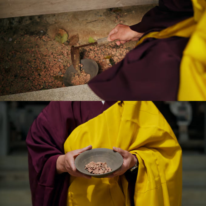 The use of this clay comes from the traditional culture of the pilgrimage, known as osunafumi (お砂踏み), where a small piece of sand or dirt is taken from each of the 88 temples and collected so that those who aren’t able to go on the pilgrimage can stand on or in front of the dirt and pray. By doing so, it is said that even those who aren’t able to go on this pilgrimage can get the same benefits as those who have. By using clay from Senyuji Temple in the making of this cup, and by using it on a daily basis, you can feel the same spiritual energy from the temple, and we hope that you feel the spirit of peace flow through you.