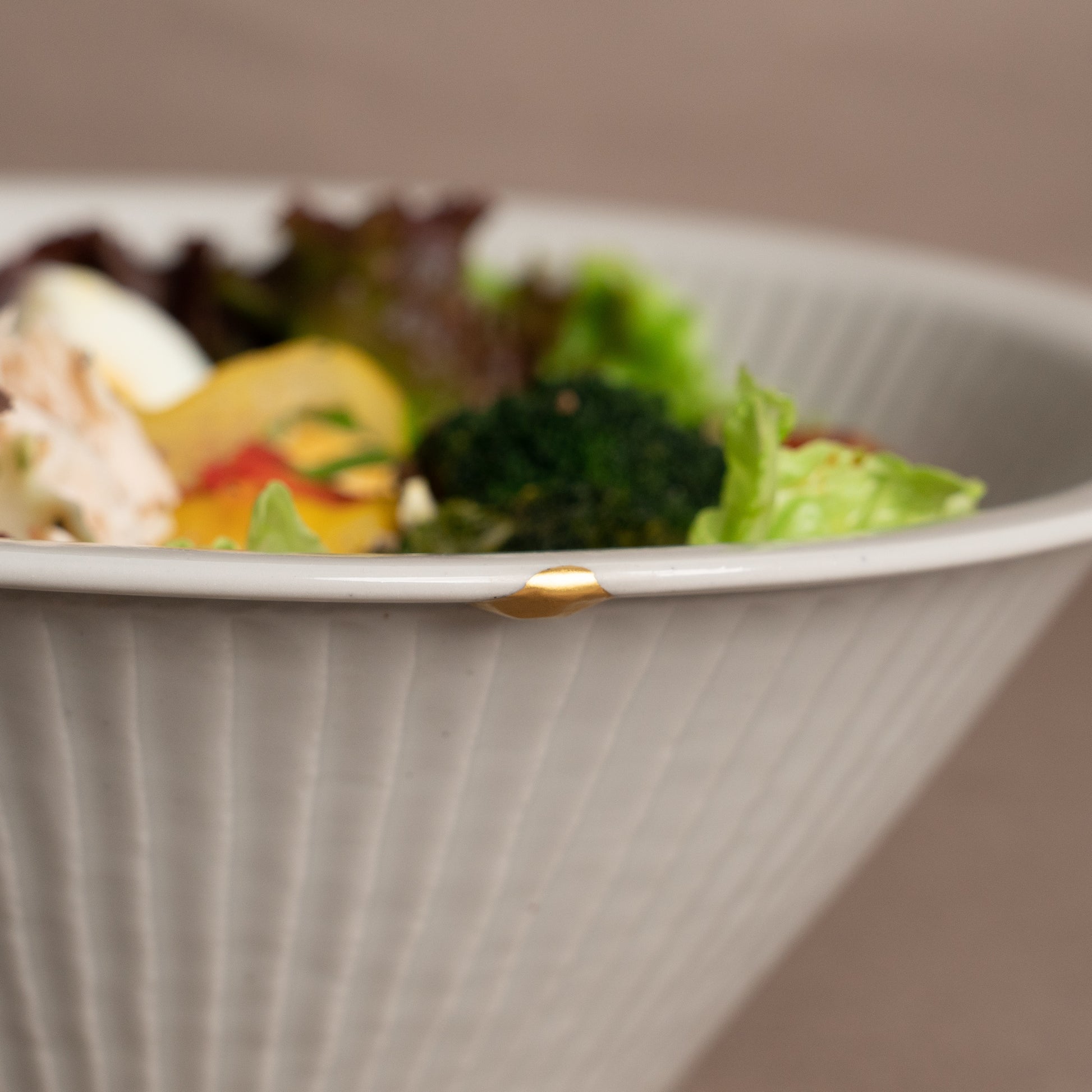 一本ずつ手作業で削る鎬の模様入りの小鉢に金継ぎ職人による一手間が加わった一点物の作品。 時間とともに育てる逸品として、重厚な金漆とのコラボレーションをお楽しみ頂けます。