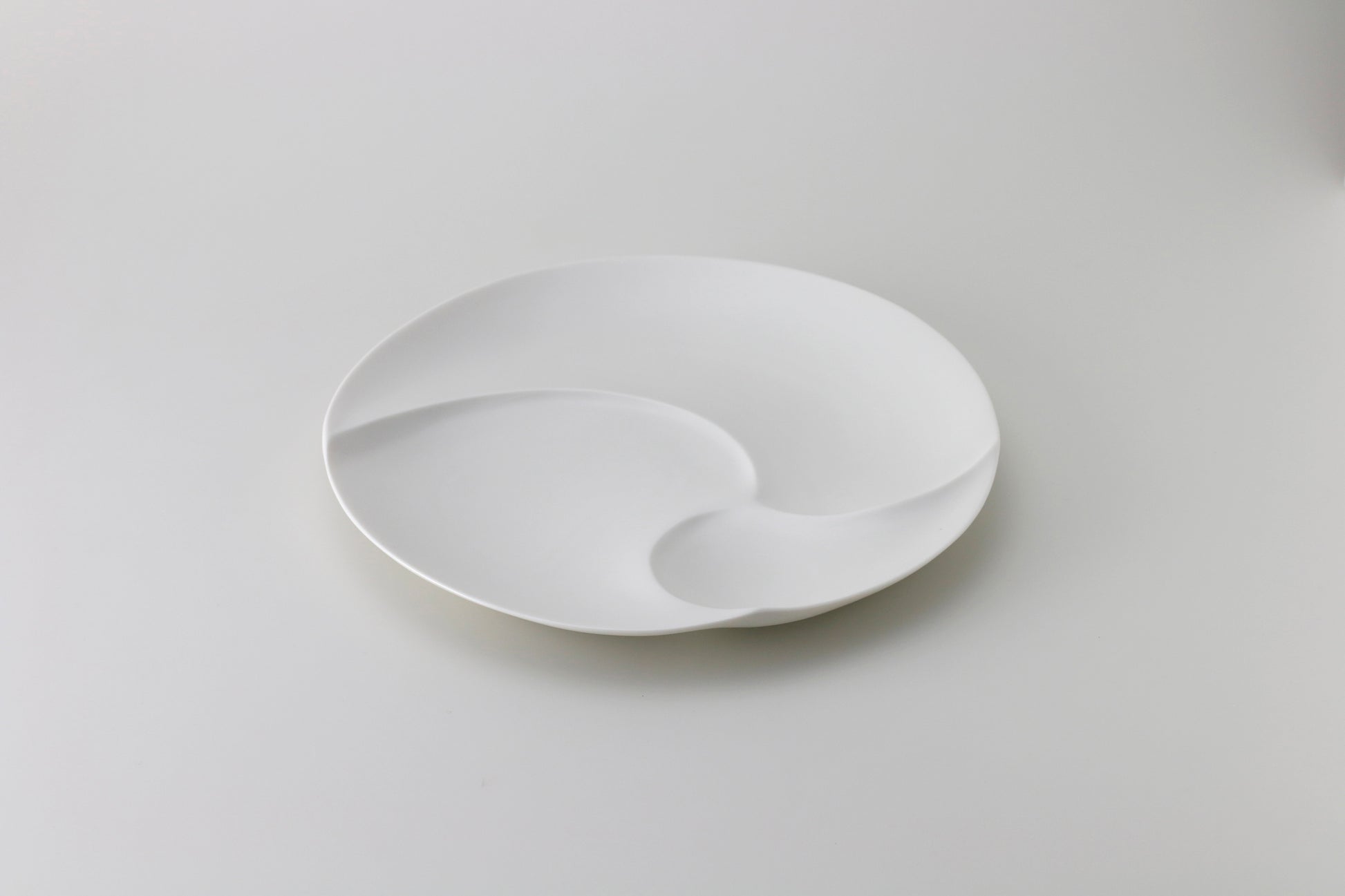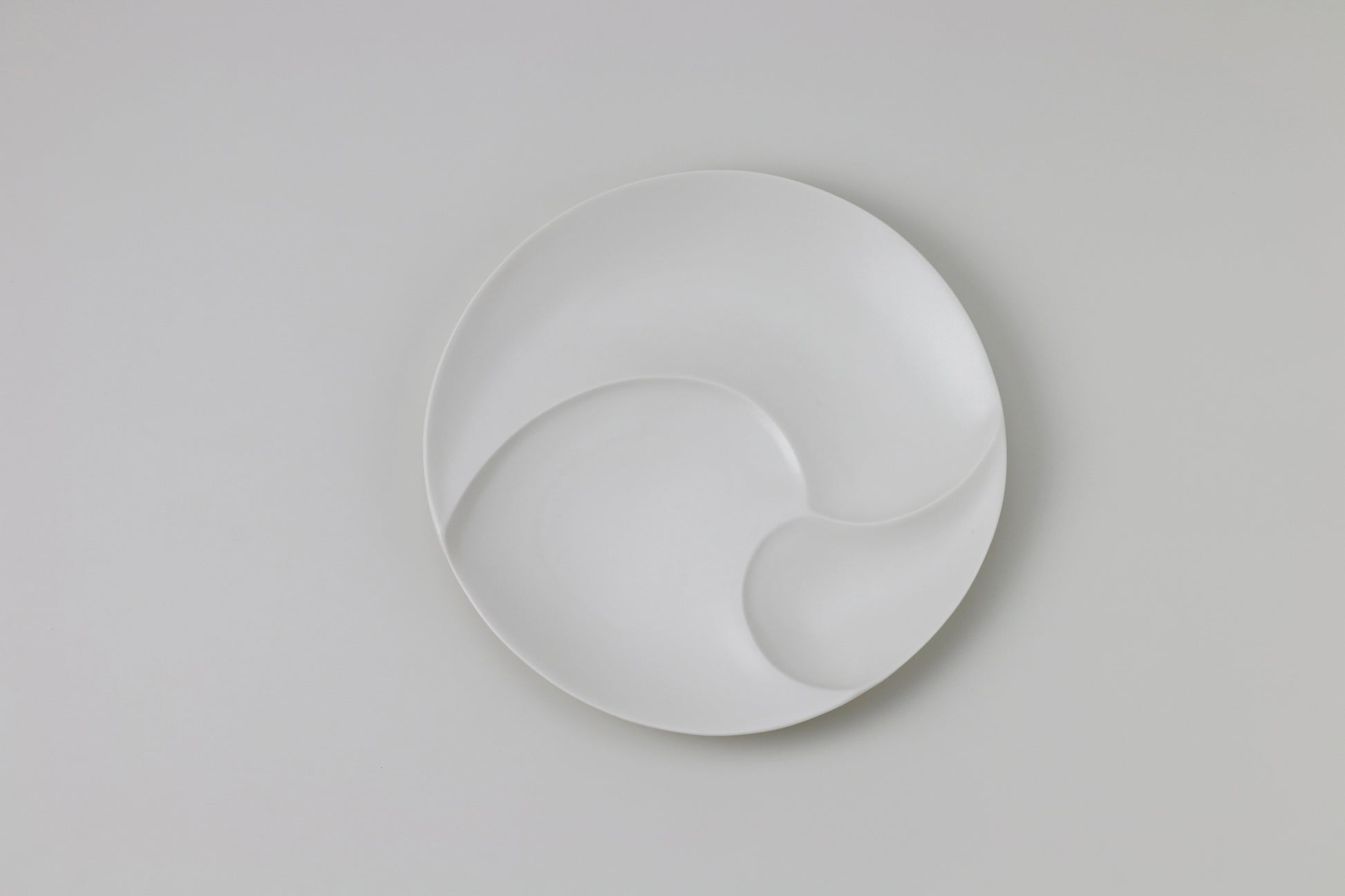 「tete」の仕切りプレートは、一般的な仕切り皿のイメージを払拭するような、ゆるやかで低めの仕切りが特徴のお皿です。