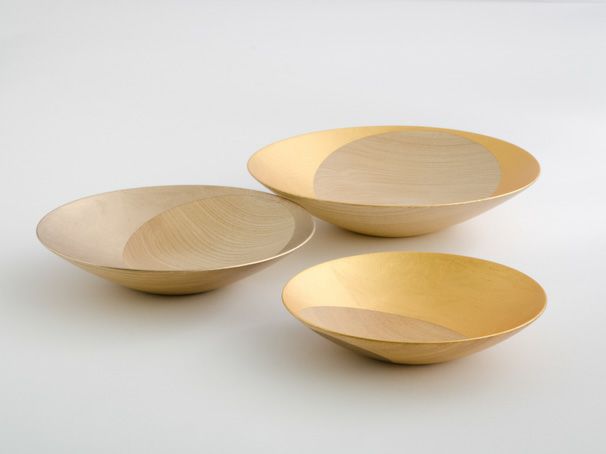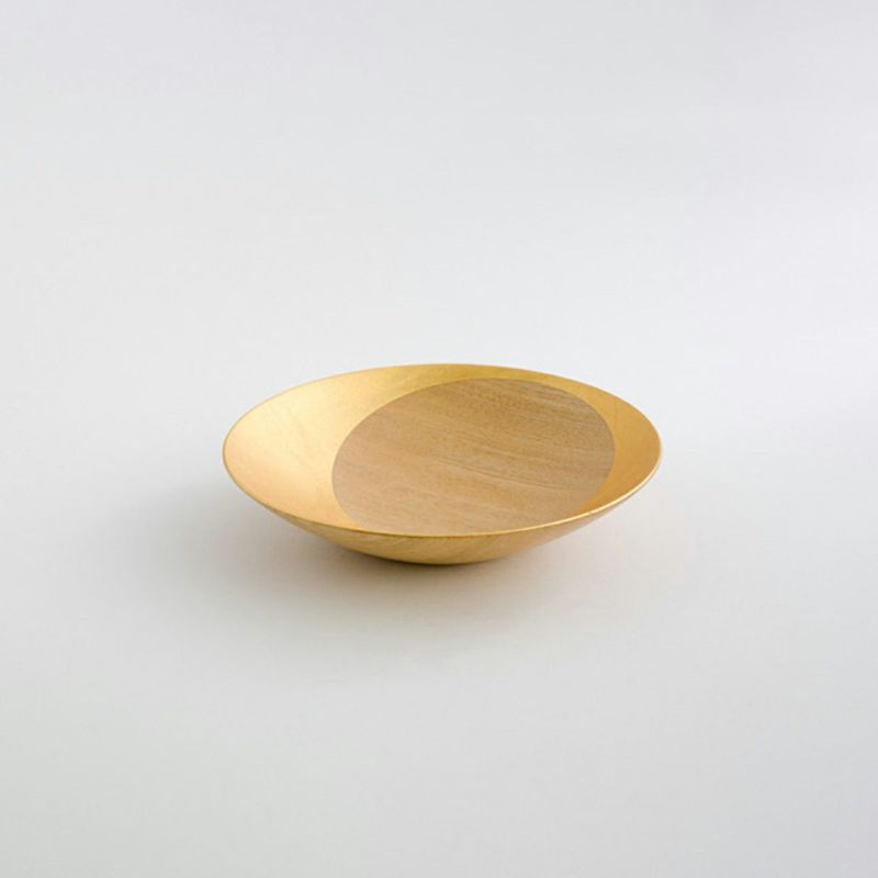 山中漆器の高度なろくろ技術で挽かれた、薄く軽い栓(せん)の木の器に、2色の純金プラチナ箔を大胆に配しました。内側はドットを抜き、逆に外側にはドットの箔を置いた、シンプルながら斬新なデザインのボウルです。 箔ならではのシワや艶といった表情や質感、陰影など、その美しさや魅力を存分に楽しめる器は、木のあたたかな風合いと美しい木目を活かしながら、内側と外側で異なる2色の箔を施すことで、ナチュラルな木肌と極薄の金属である箔の対照的な素材のコントラストや、唯一無二の純金プラチナ箔「永遠色」「久遠色」をひとつの器で楽しめるようなデザインになっています。