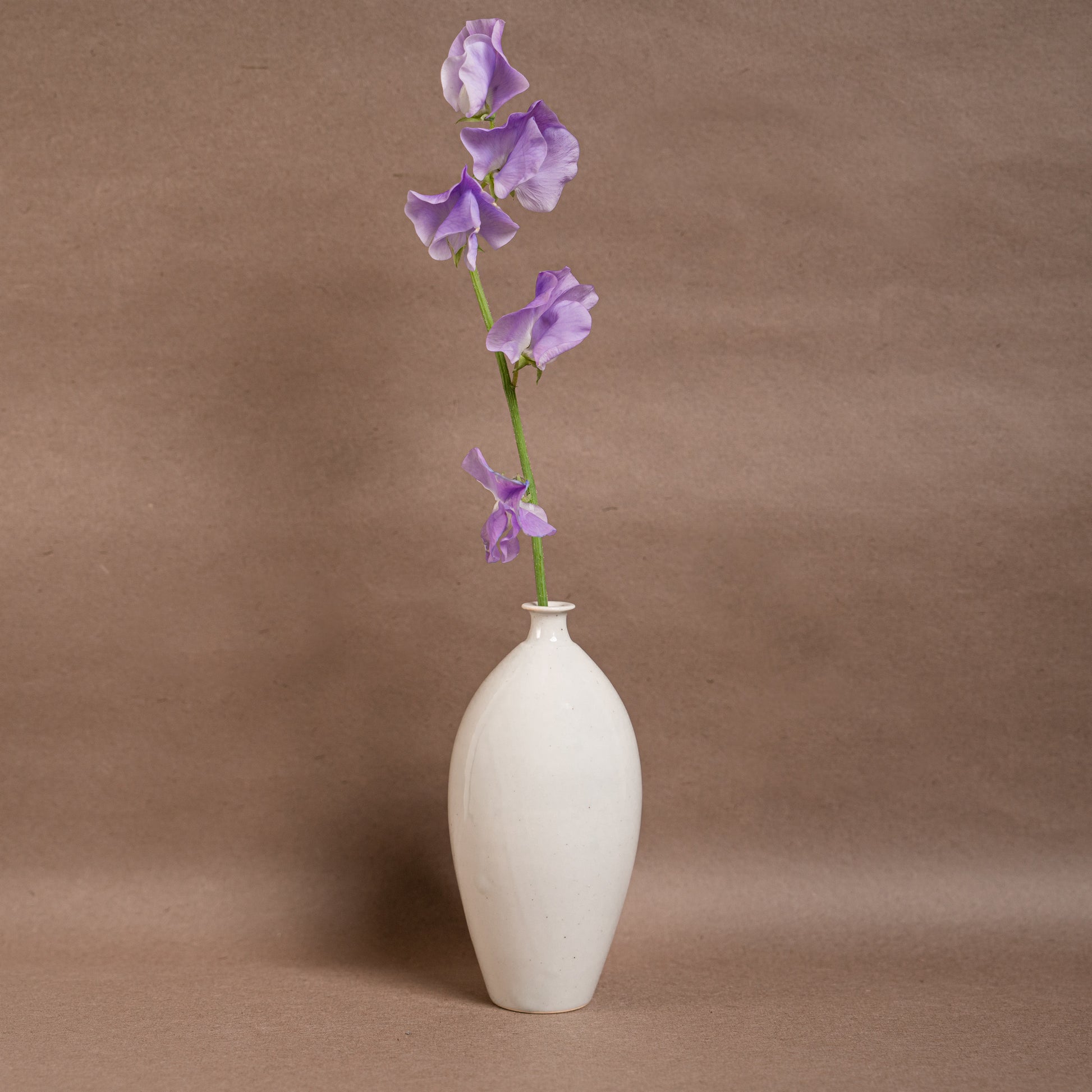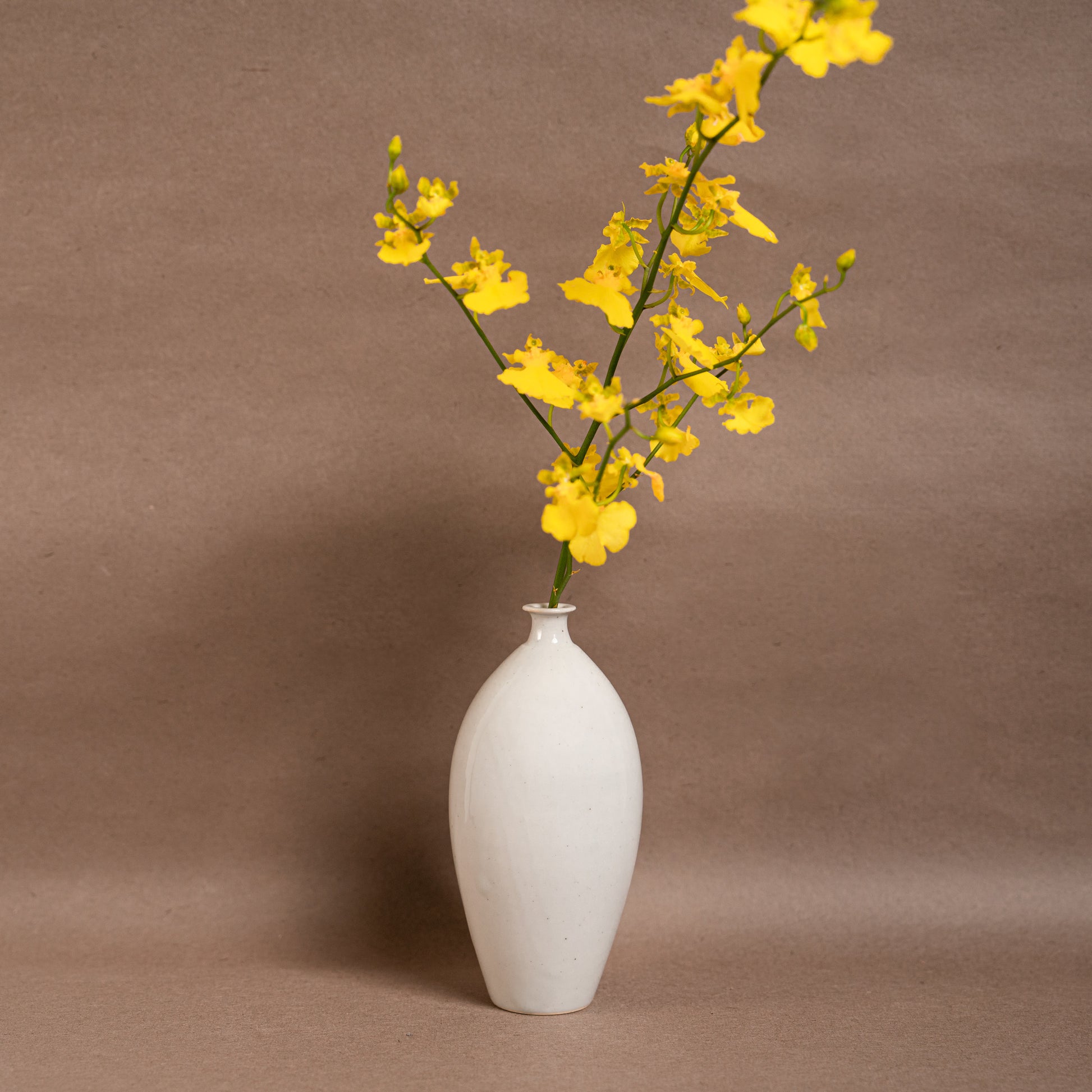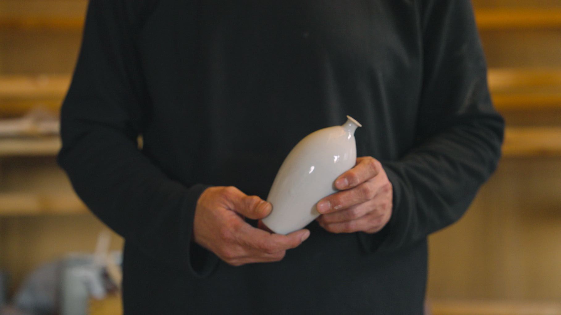 フォルムの美しさに目を奪われる白磁花器。 時間とともに育てる磁器 花を生けずとも、それだけで絵になる佇まいです。
