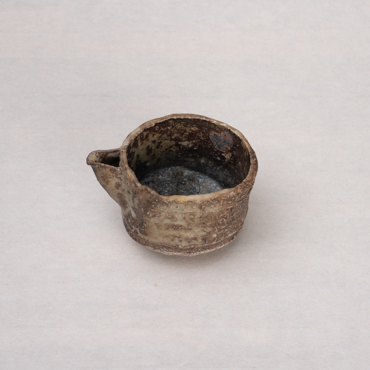 呑みすぎないサイズ感がオススメの片口 伊賀の武骨な柄温かみのある陶の質感と福島真弥さんならではのデザインは料理を美しく引き立ててくれます