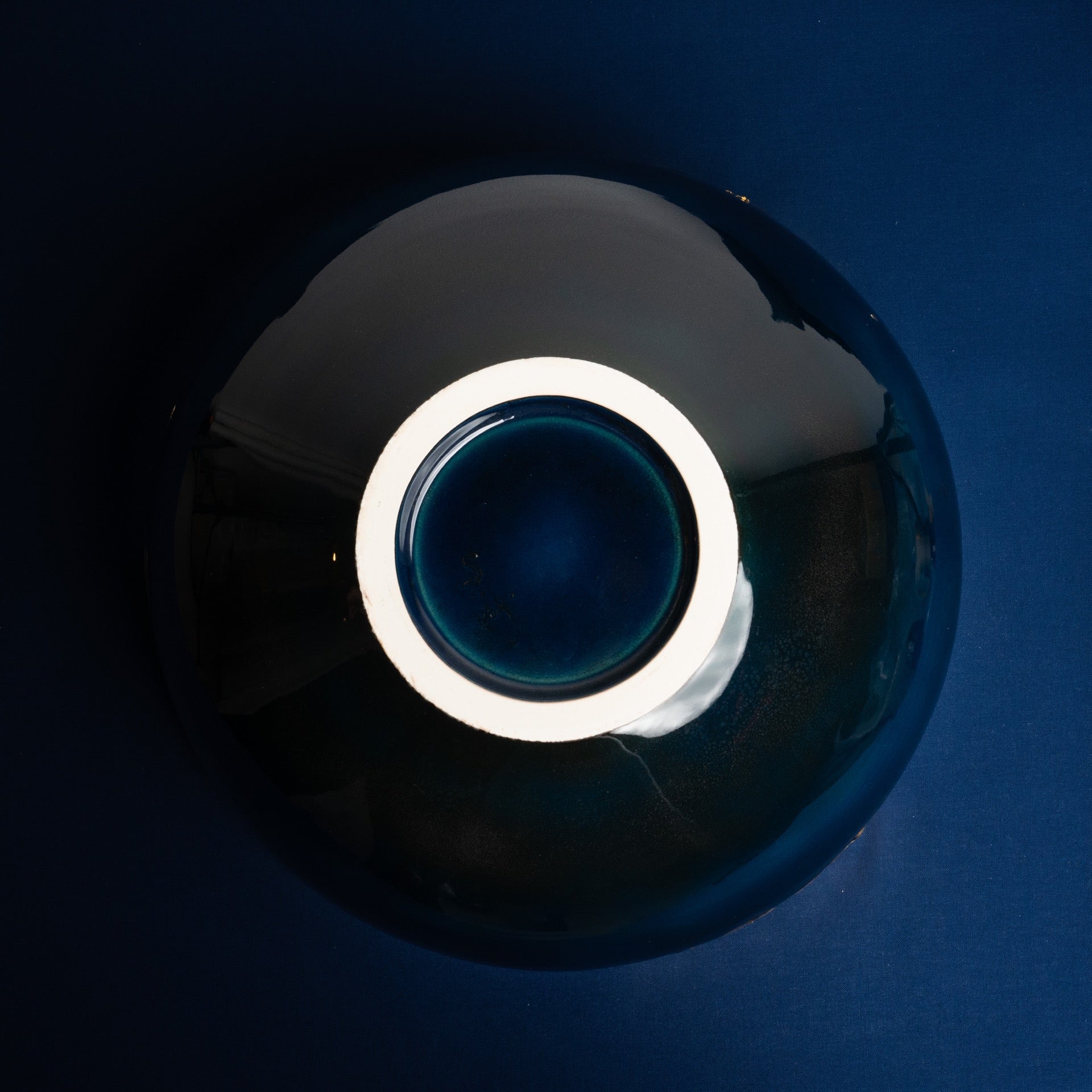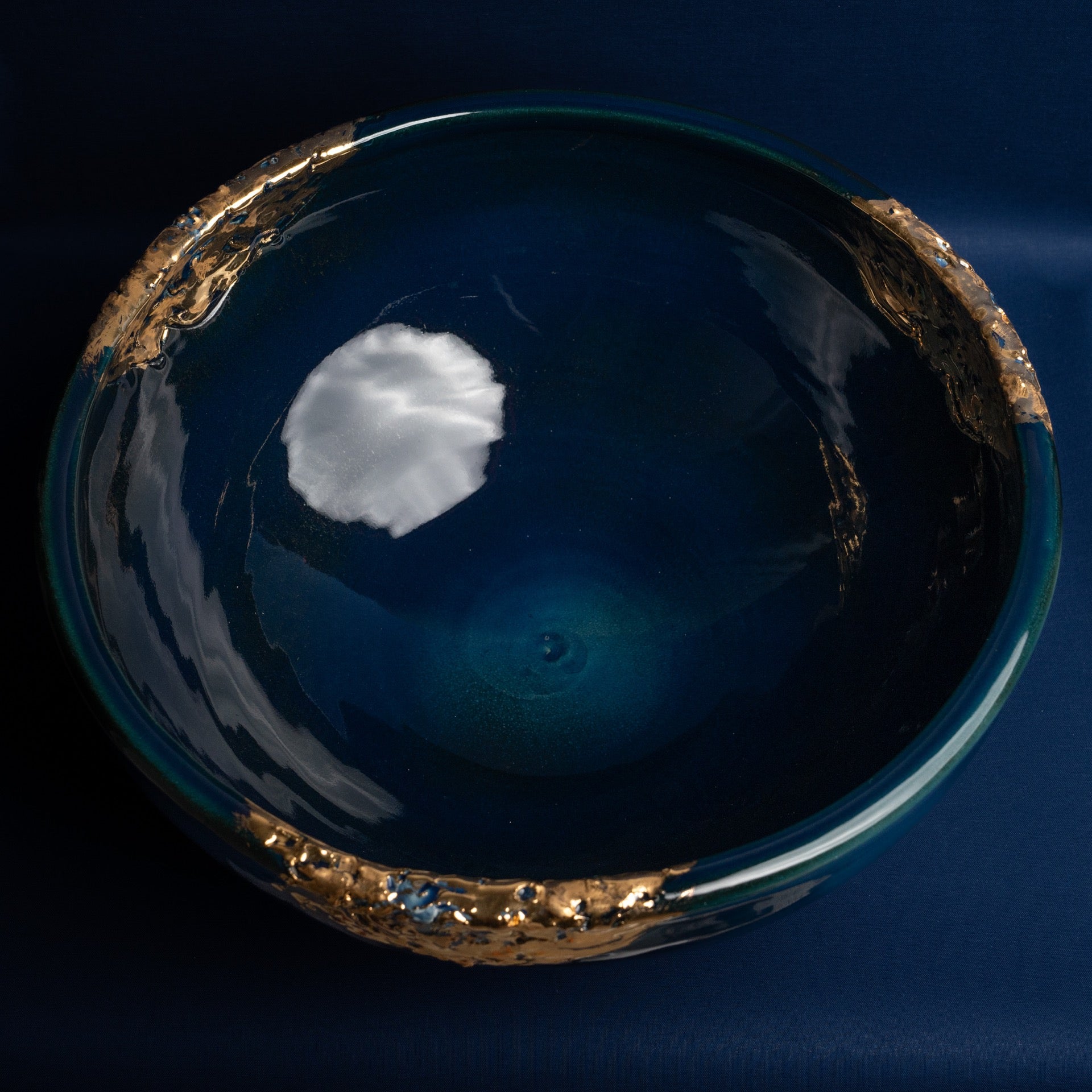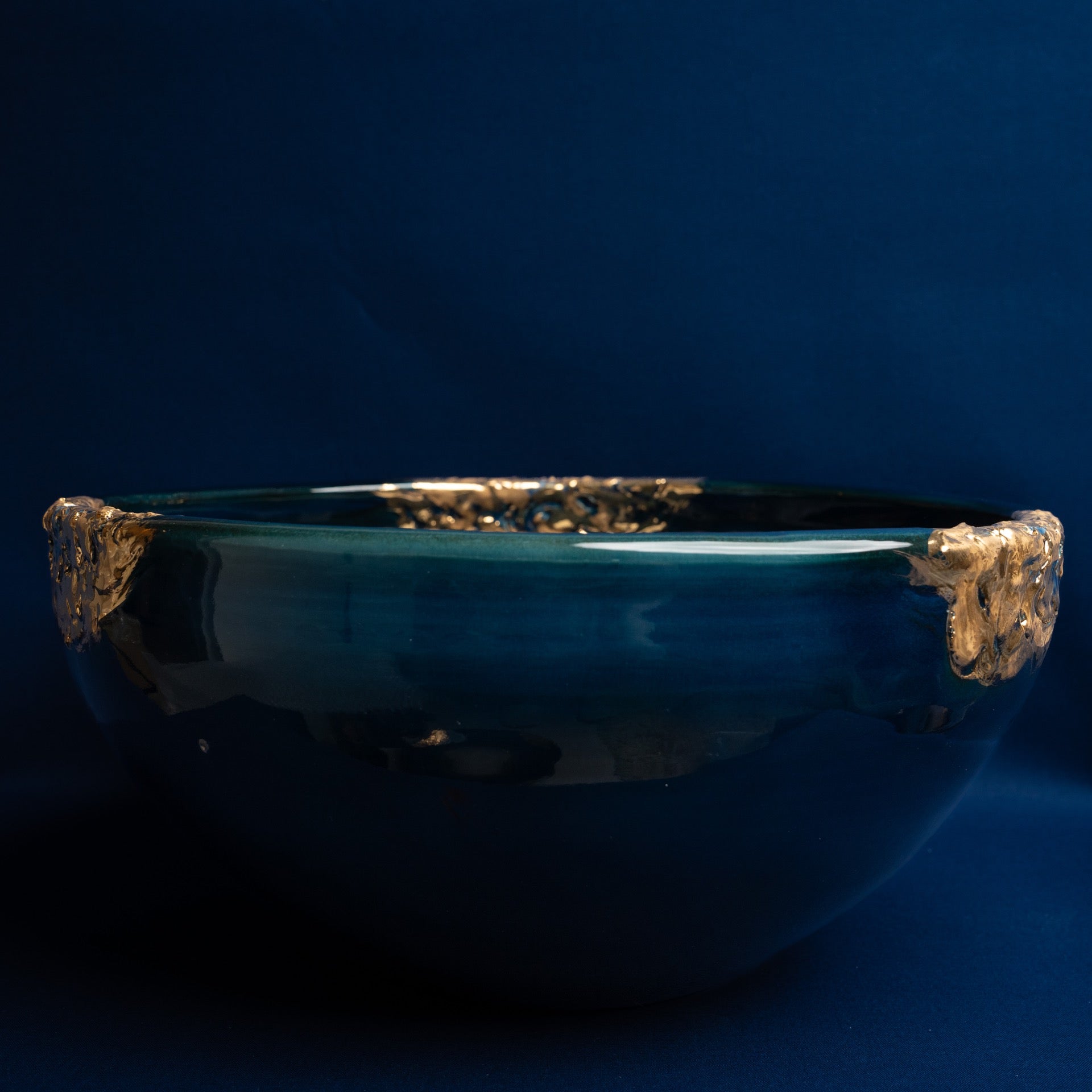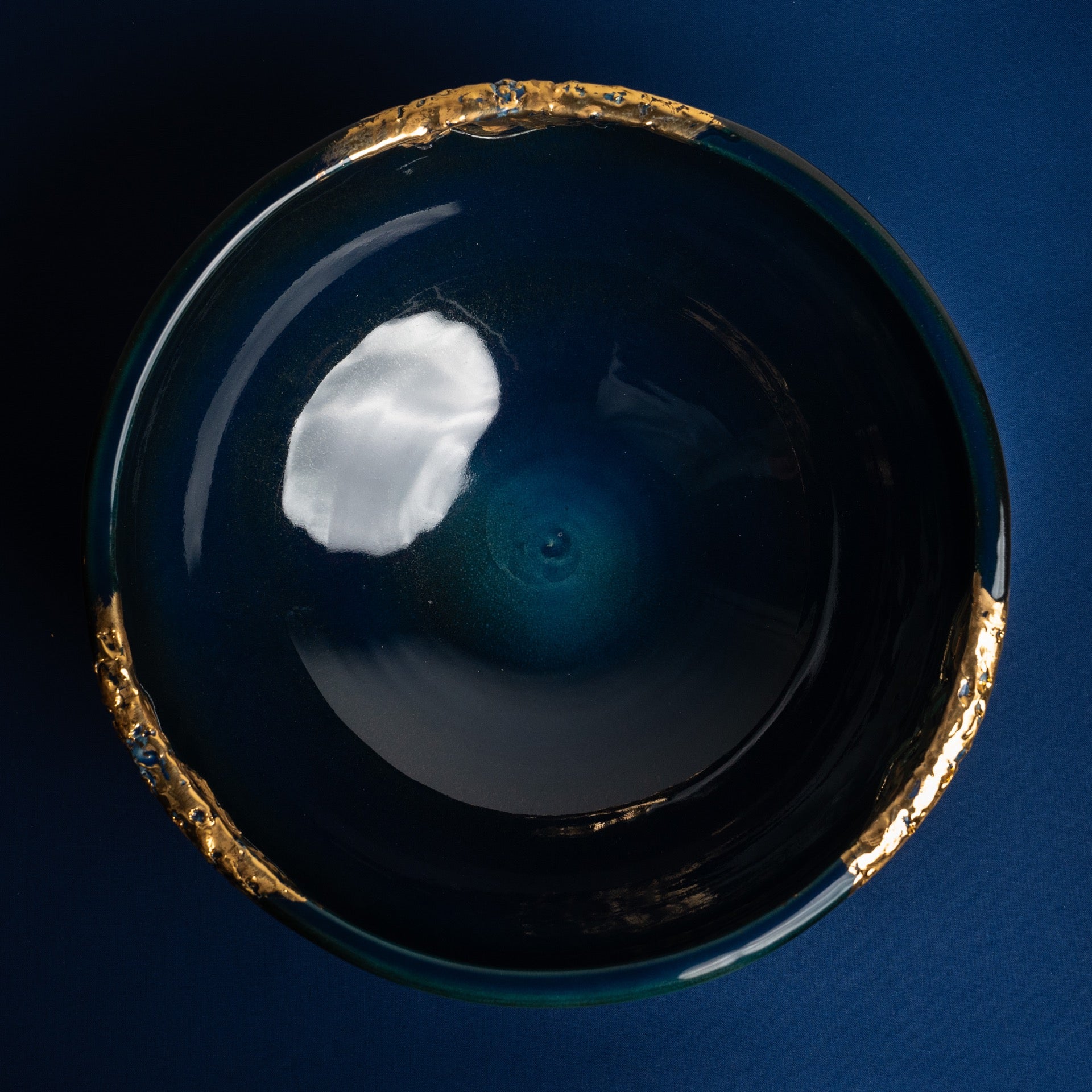 【MOSES】=金彩濃紺の器。 彫りを入れた部分に金を豪快に塗りました。 シナイ山で神がモーゼに語る(十戒)のイメージです。