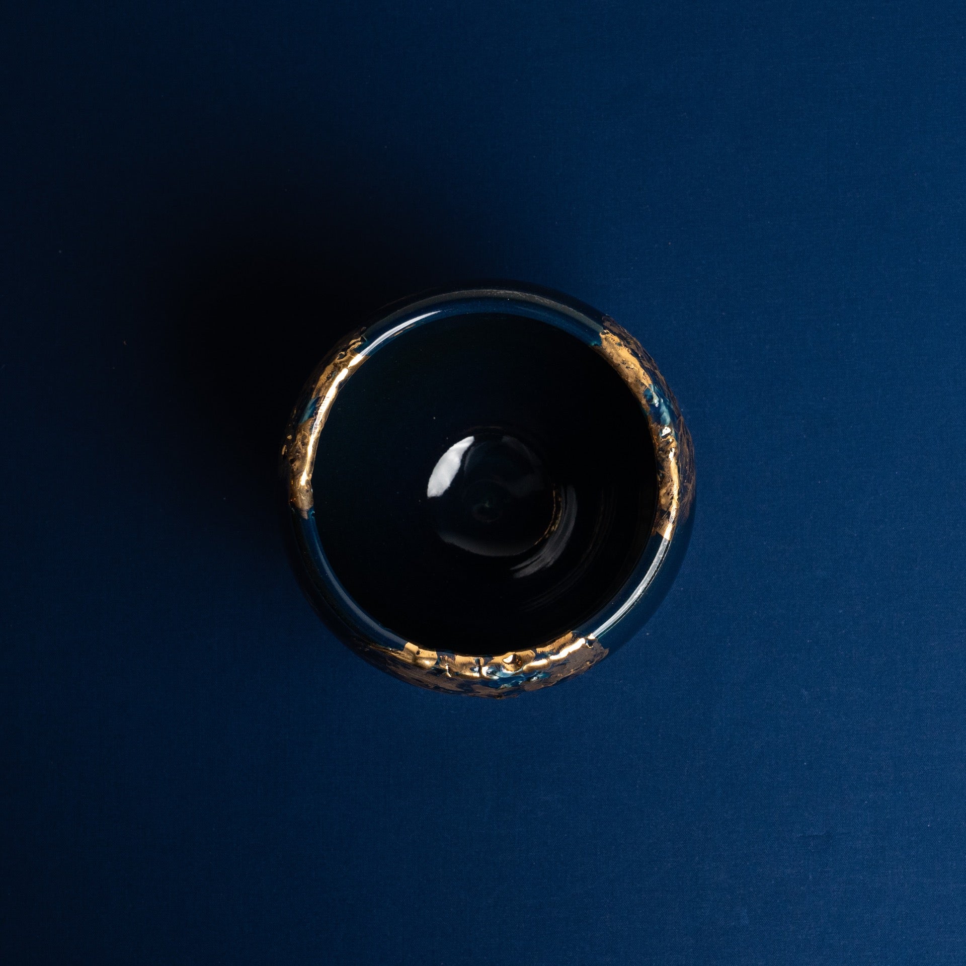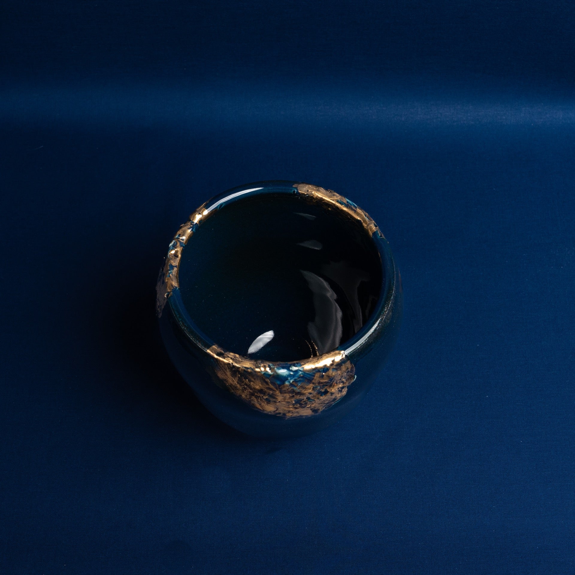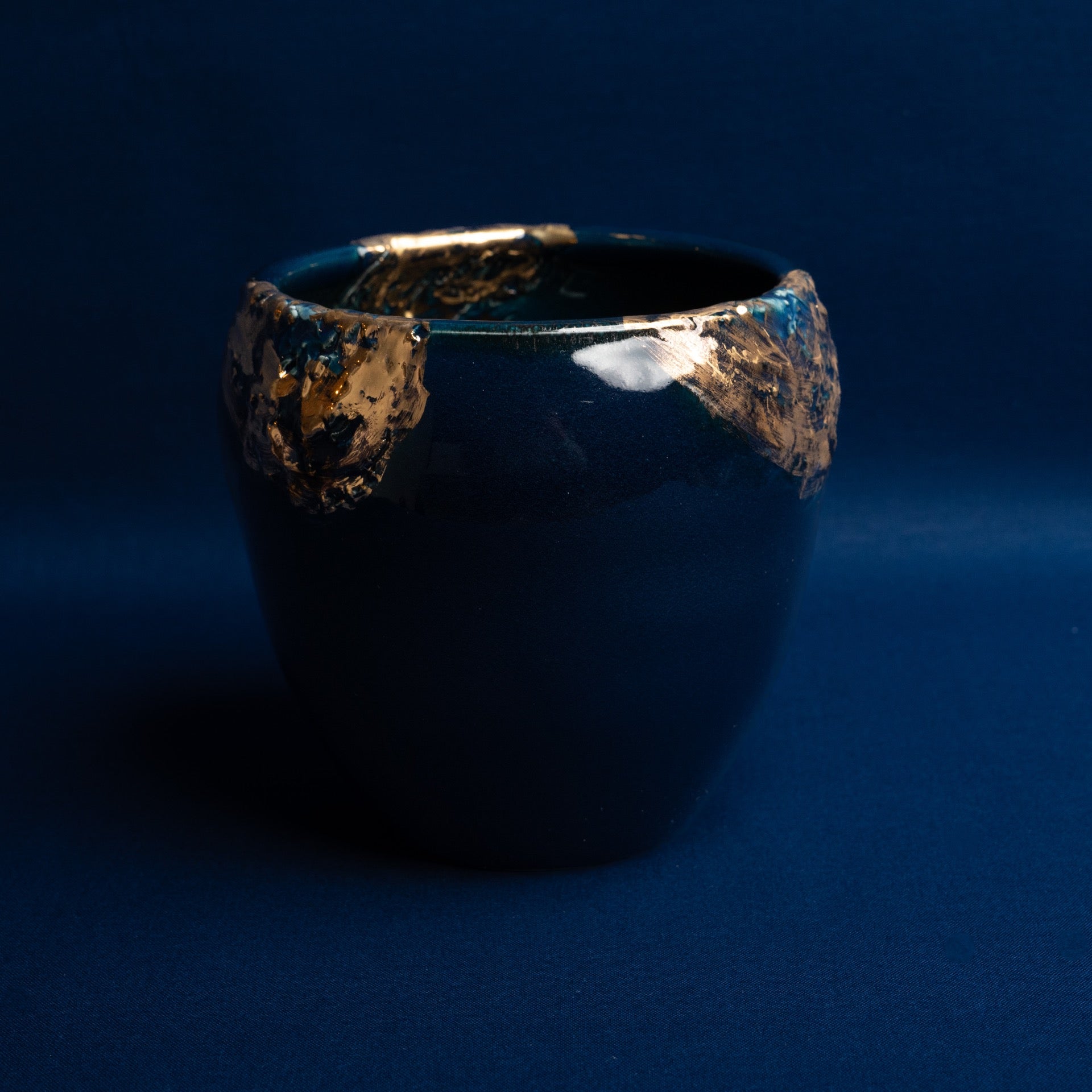 【MOSES】=金彩濃紺の器。 彫りを入れた部分に金を豪快に塗りました。 シナイ山で神がモーゼに語る(十戒)のイメージです。