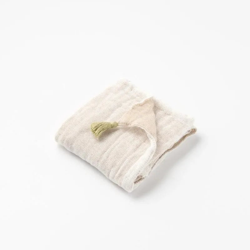 現在はその通気性・吸収性・速乾性の優れた特徴をいかし、洗う度にふんわりと柔らかく、手放せられない肌触りへと変化していくはんかちに生まれ変わりました。
