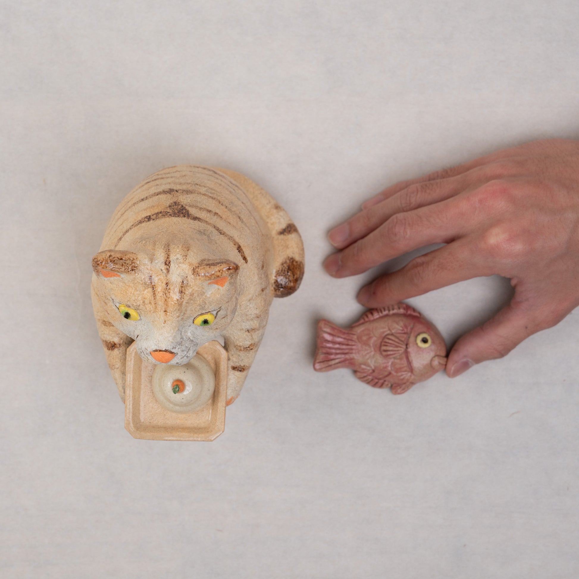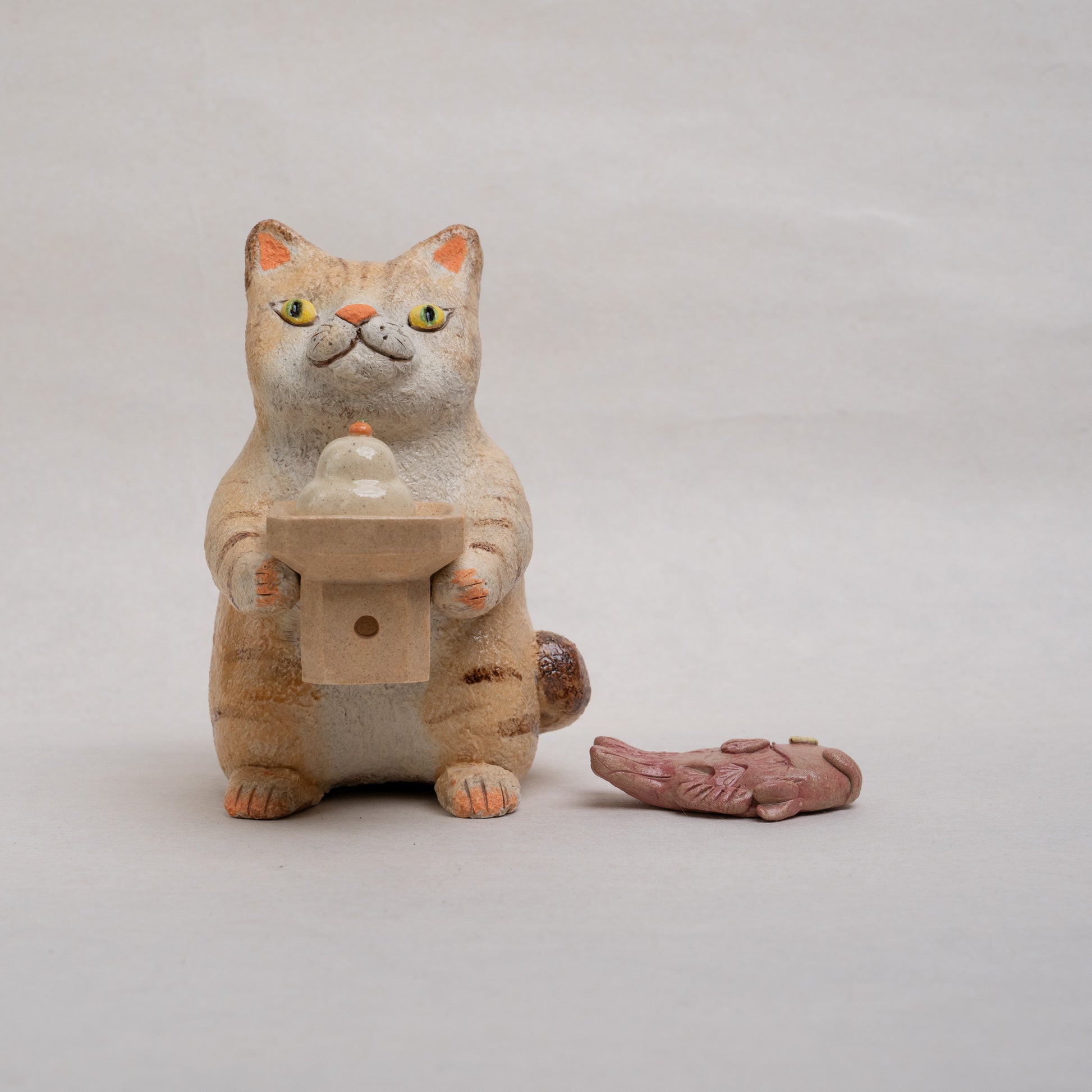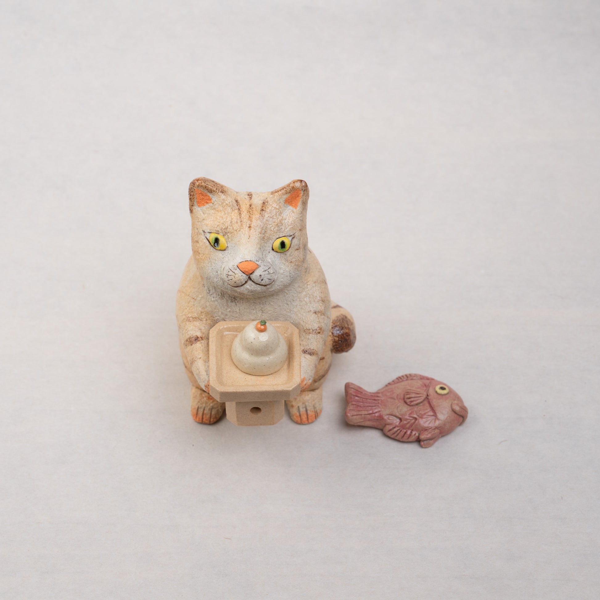 【伴 裕子】23_三方を持つネコ(餅と鯛)