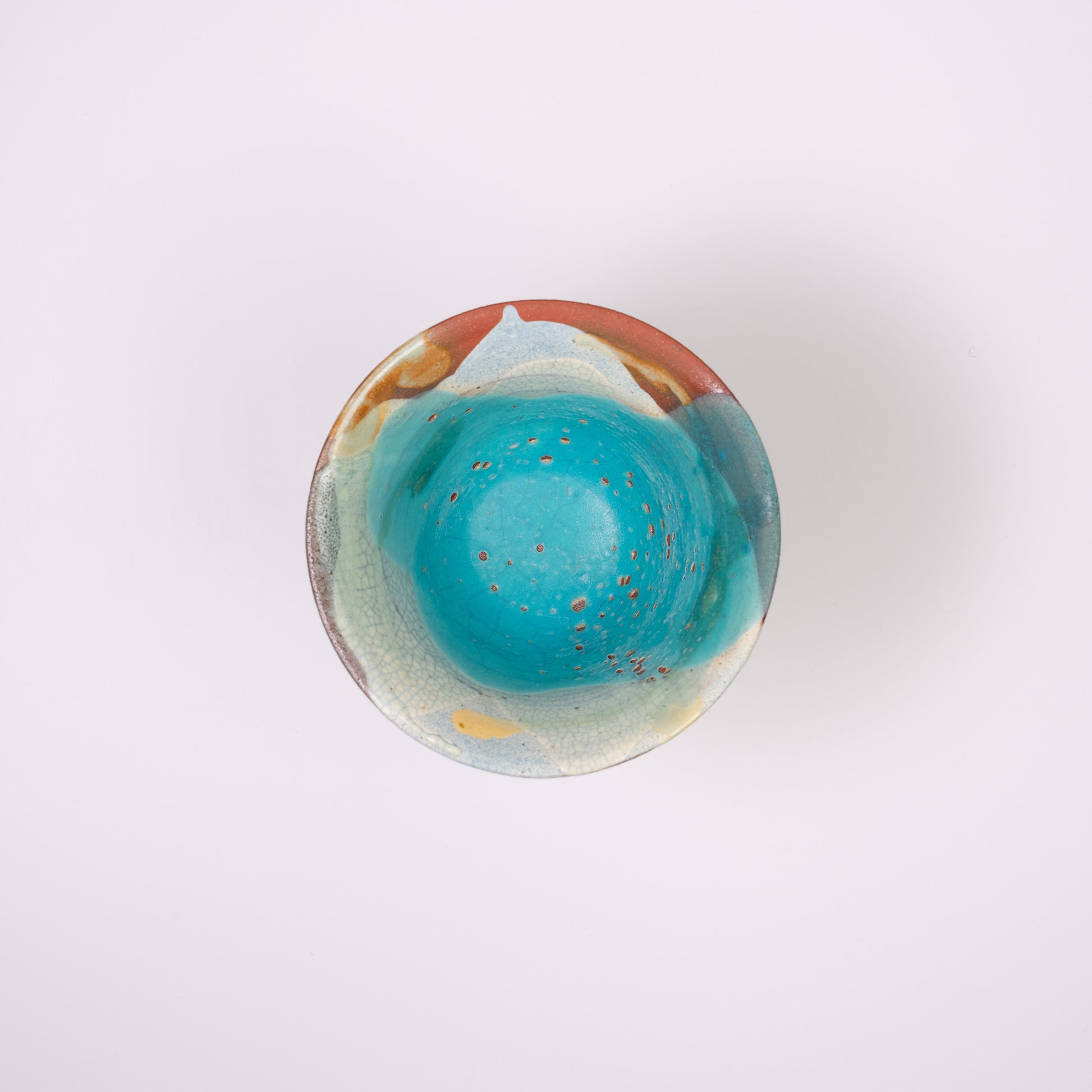 琉球藍が鮮やかに染まった高台杯。お酒以外にも果物などの食物を入れるお皿としてもご使用いただけます。