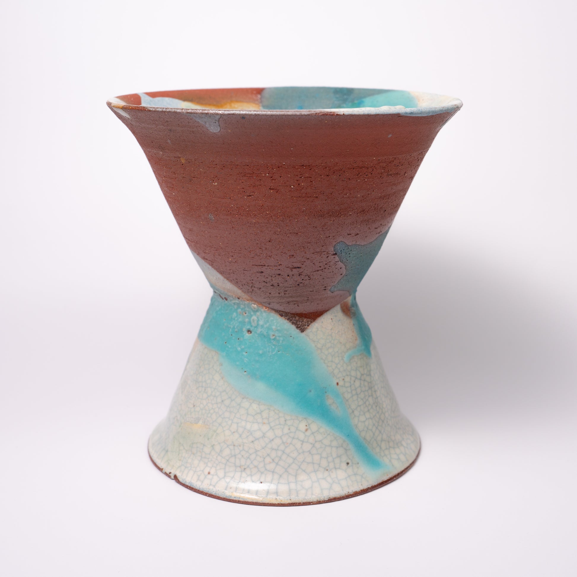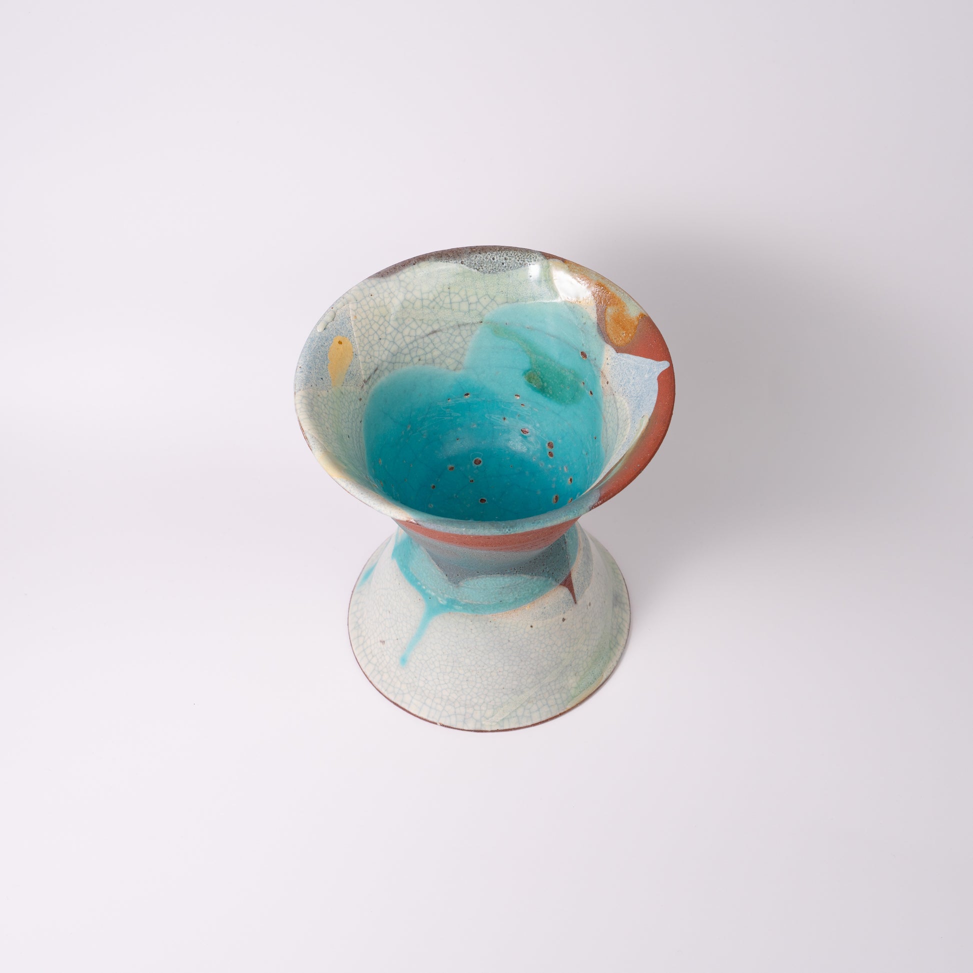 【新里 義和】009_琉球藍 海花 高台杯