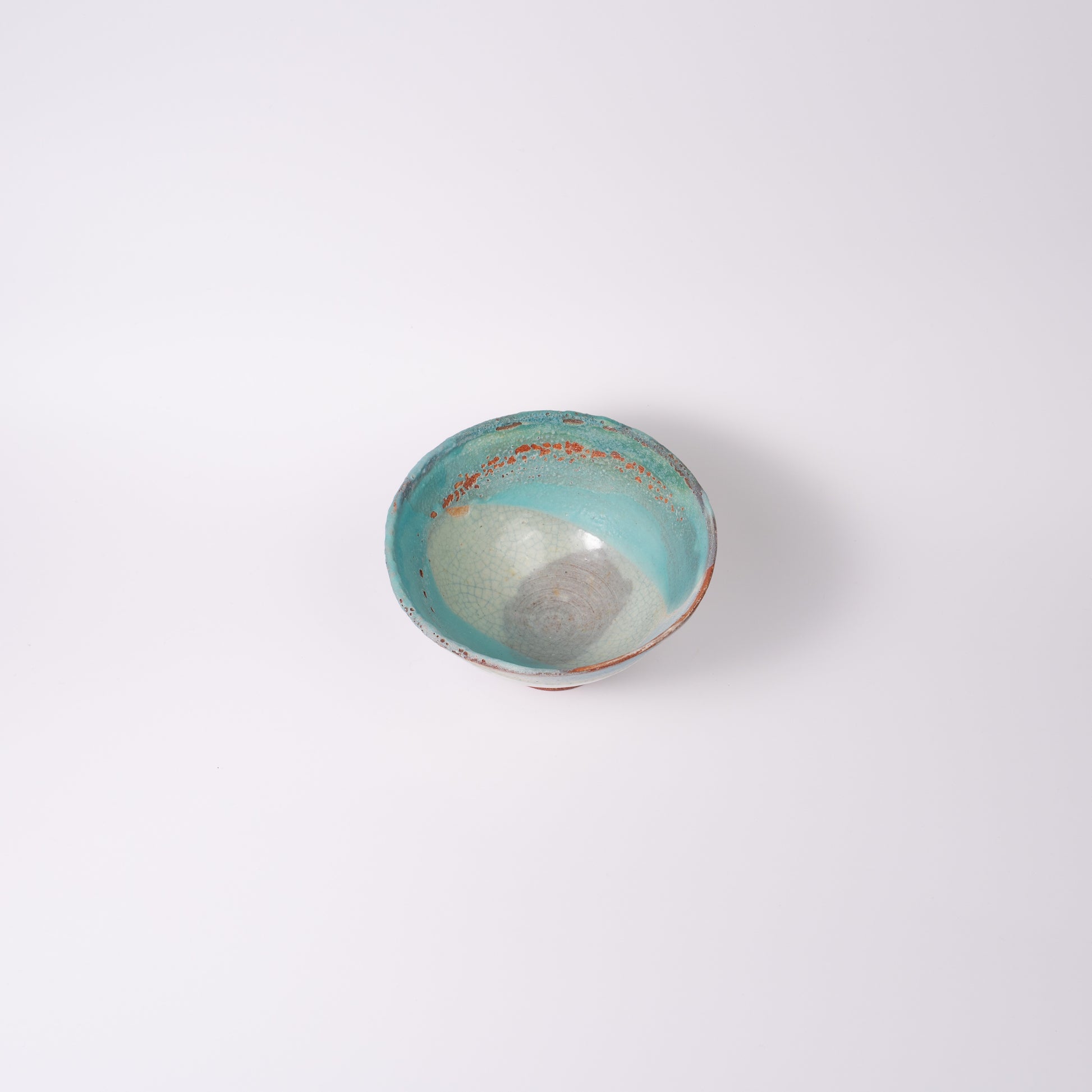古くから沖縄で飲まれているブクブク茶のお茶碗。ブクブク茶以外にもご飯茶碗としてもご使用いただけます。 義和氏が丁寧に育てた琉球藍が貫入を綺麗に青に染めているのが特徴。