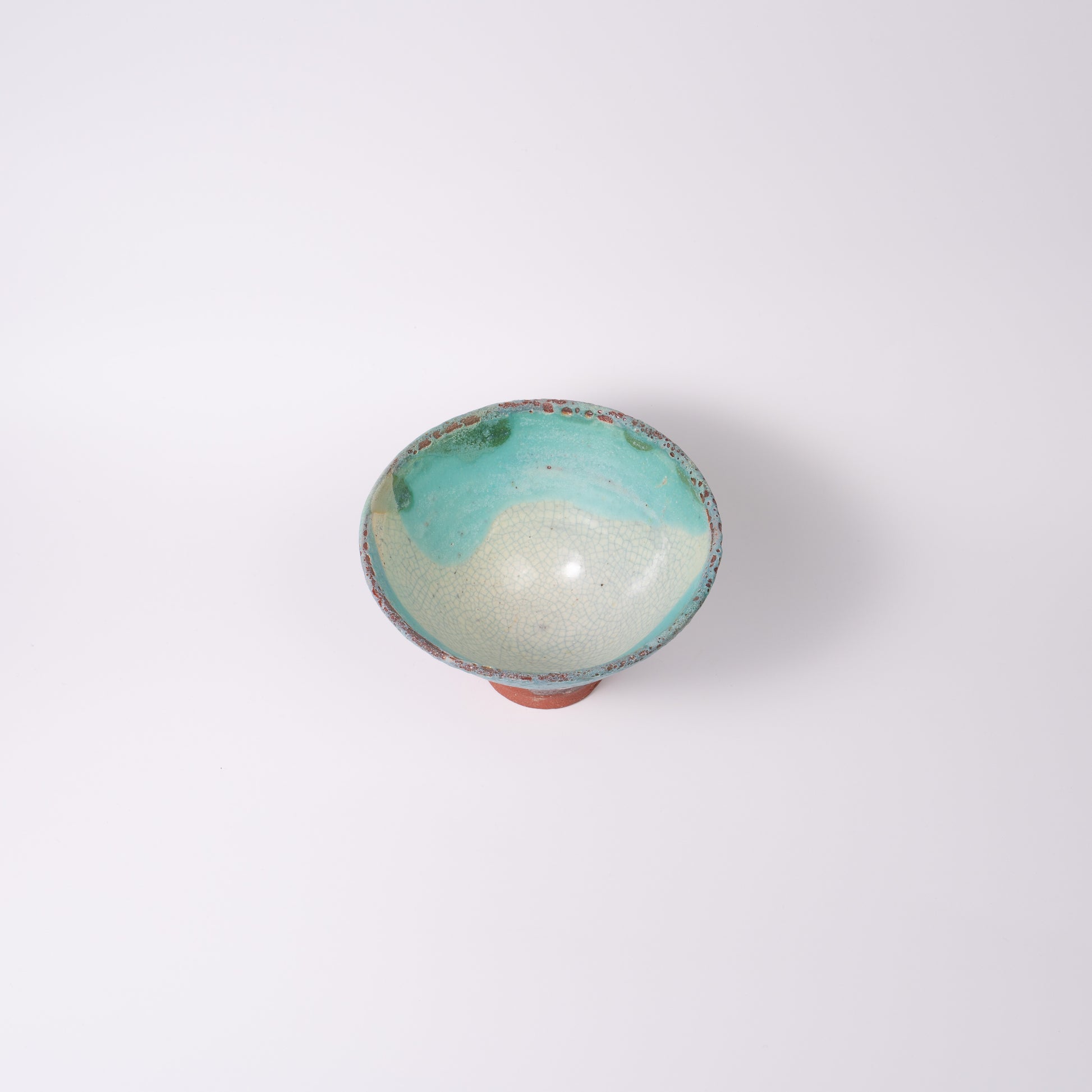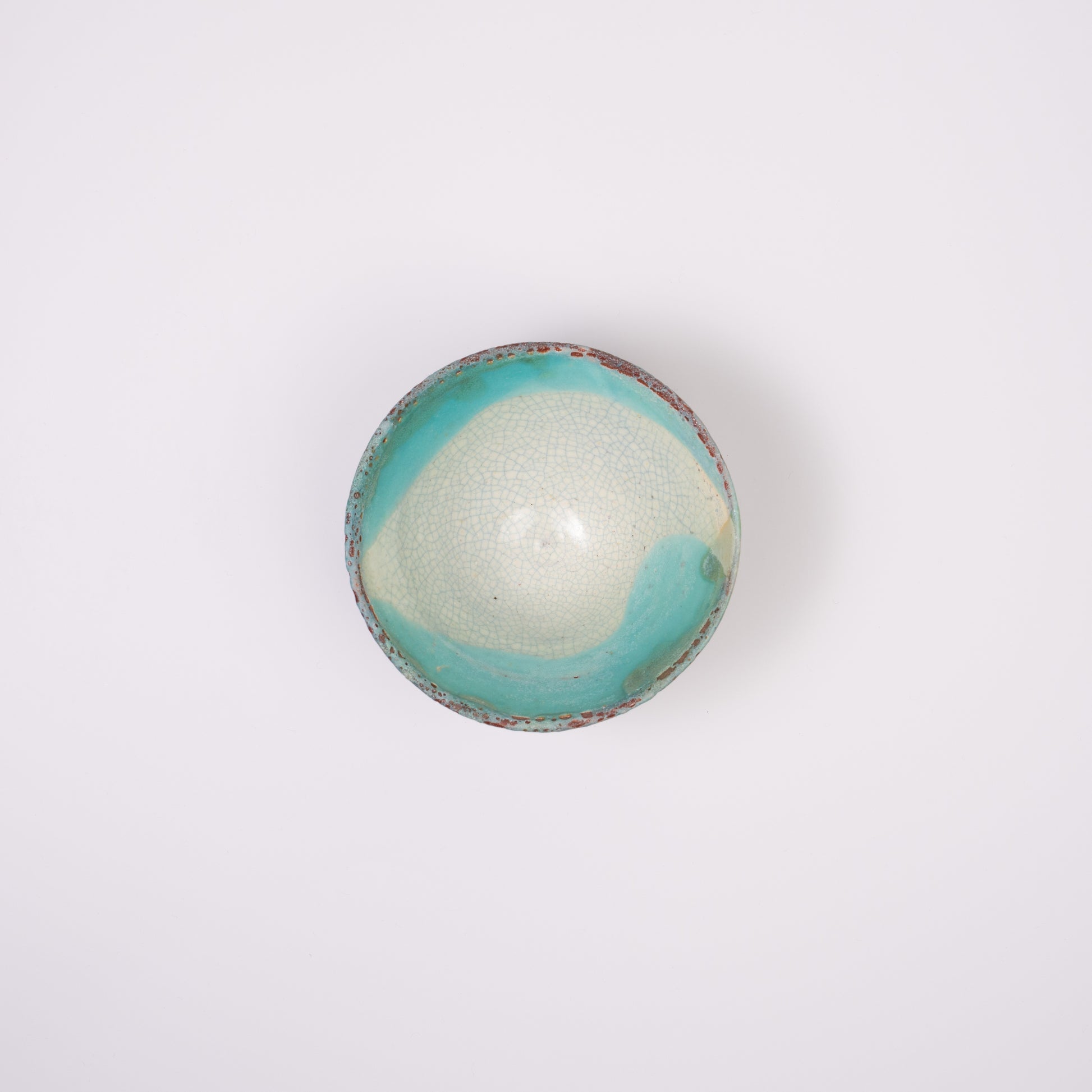 古くから沖縄で飲まれているブクブク茶のお茶碗。ブクブク茶以外にもご飯茶碗としてもご使用いただけます。 義和氏が丁寧に育てた琉球藍が貫入を綺麗に青に染めているのが特徴。