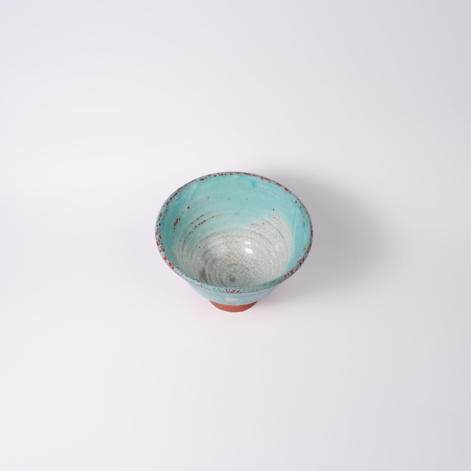 古くから沖縄で飲まれているブクブク茶のお茶碗。ブクブク茶以外にもご飯茶碗としてもご使用いただけます。 義和氏が丁寧に育てた琉球藍が貫入を綺麗に青に染めているのが特徴。
