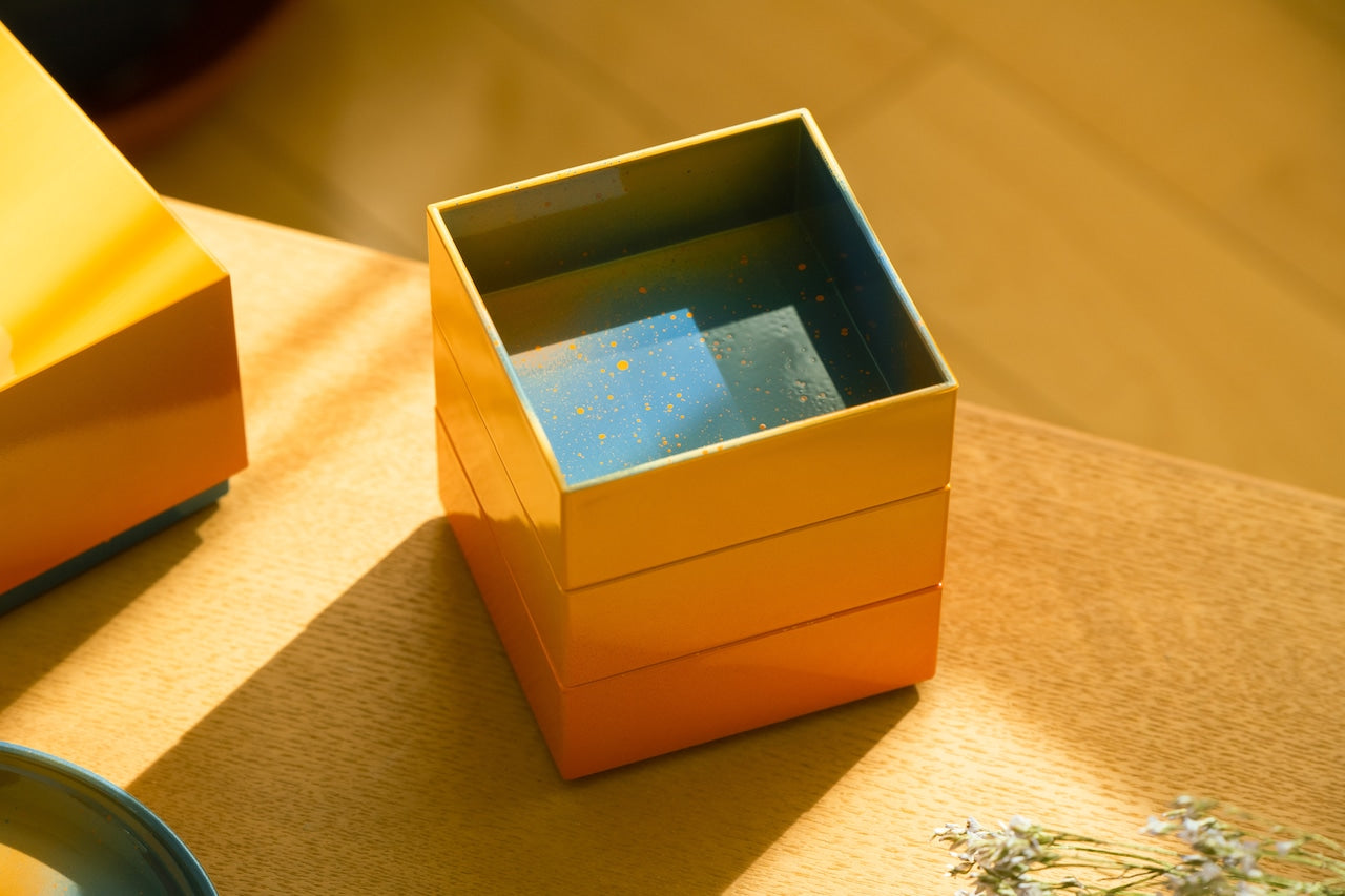 お菓子や食べ物だけはなく、アクセサリーやファッション小物を収納できる三段重です。