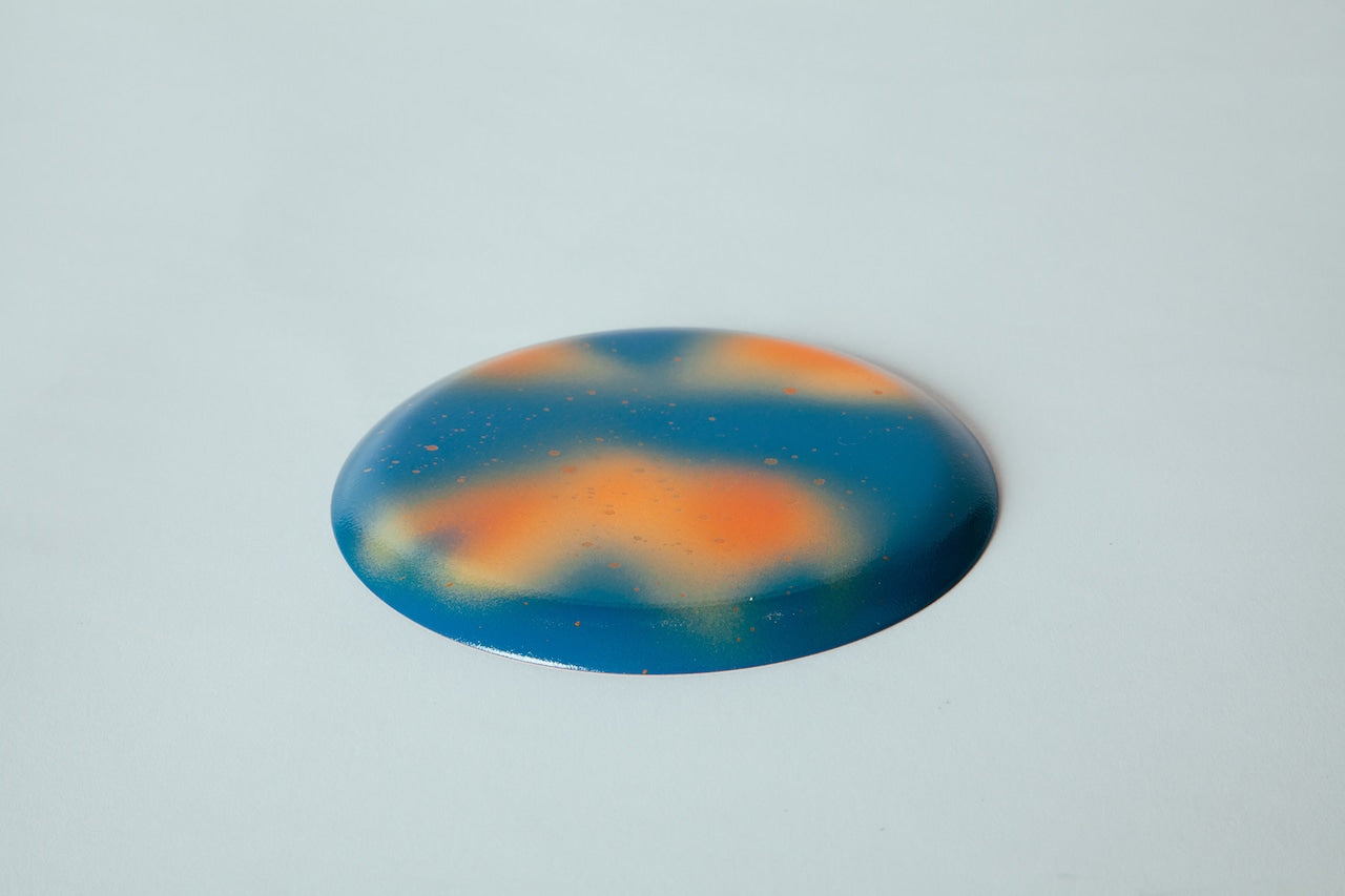 石川県加賀市の加佐の岬から見る夏の終わりの夕焼けが反射して海の色と混ざり合ったデザイン。橙のグラデーションと海に差し込む光の変わり塗の両面塗装となっています。